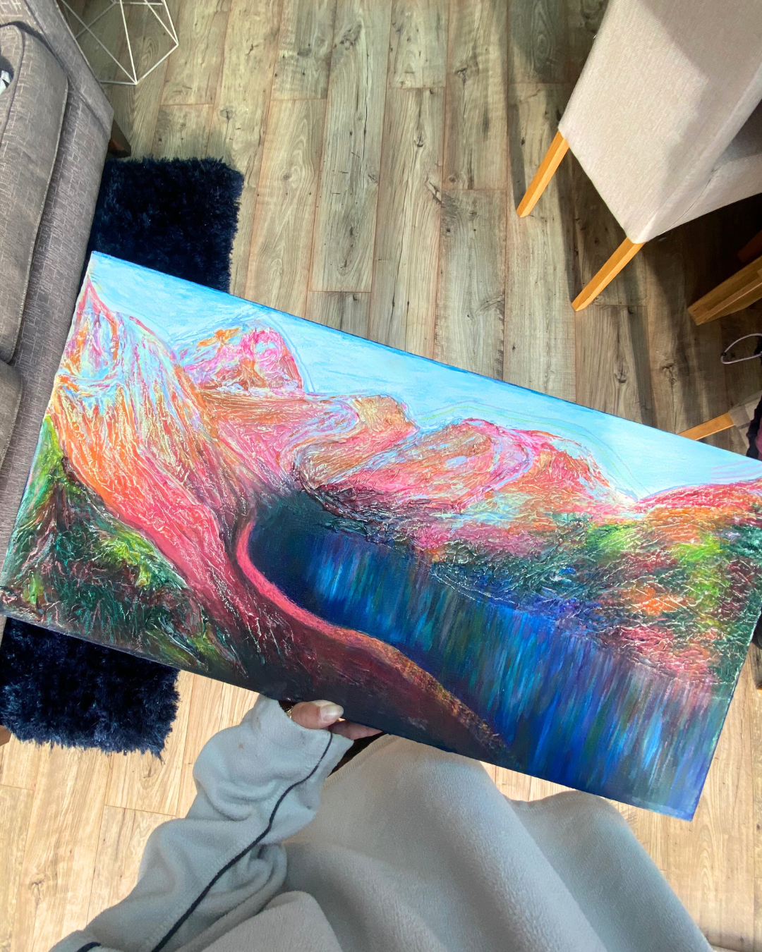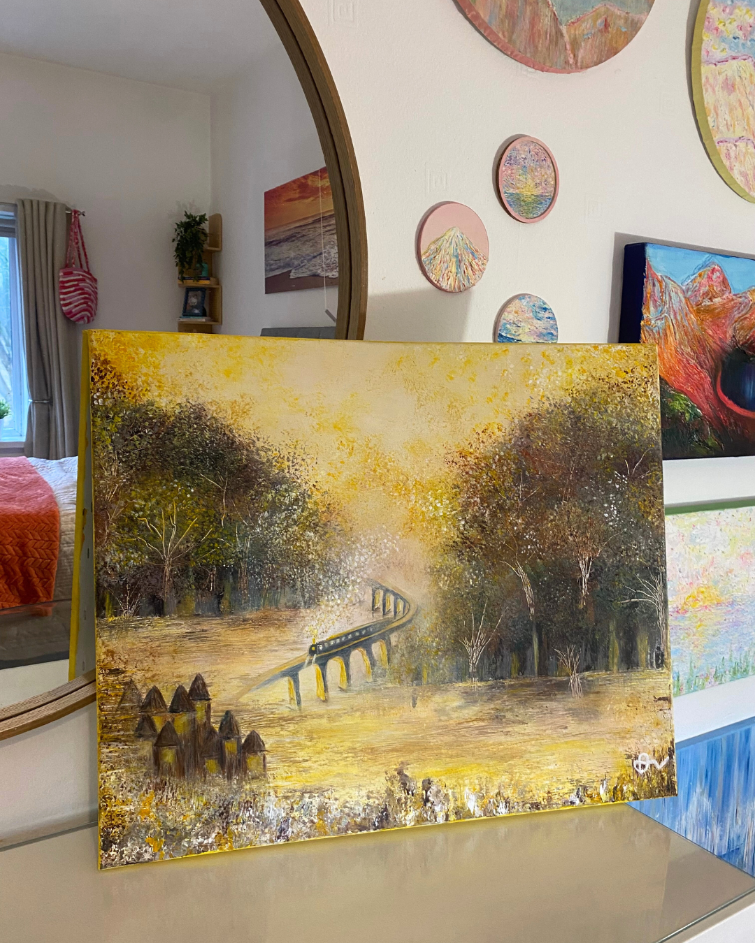 I create expressive, textured pieces that fill your space with vibrant colour and movement. From bold abstracts to landscapes inspired by your favourite memories. Whether it’s a place you love, a moment you want to relive, or a feeling you want to hold onto ~ let’s turn it into art.